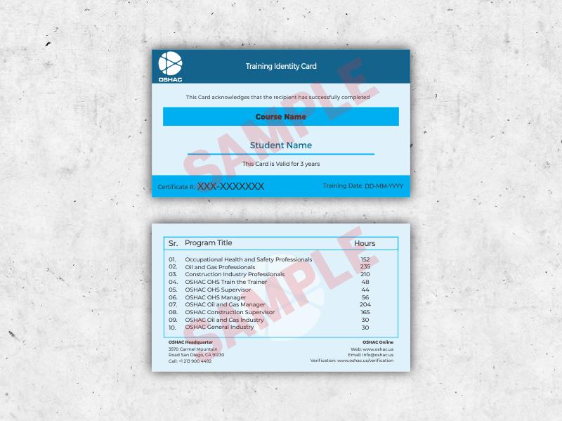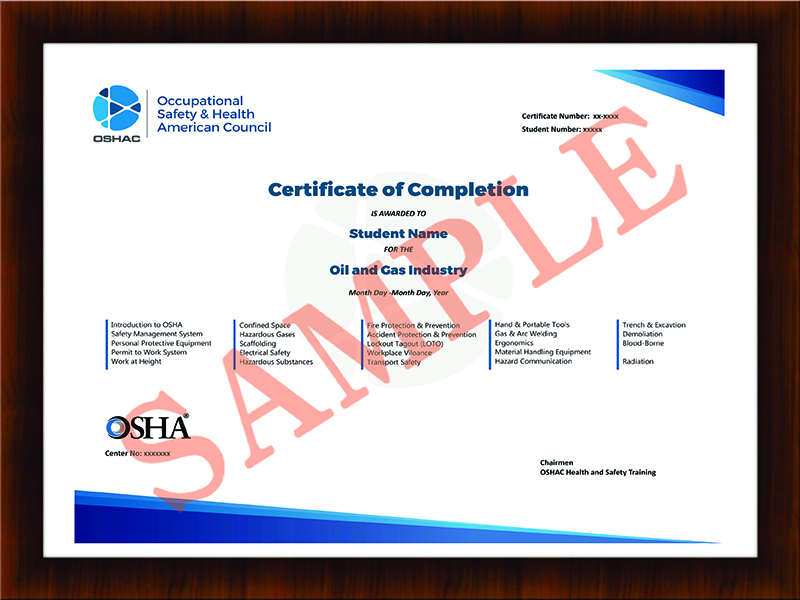 Occupational Safety and Health American Council (OSHAC) introduce this 30-hour OSHA training to teaches safety awareness and helps each worker recognize and reduce the risks of job site hazards. Our fully narrated and interactive training is intended as a comprehensive overview of OSHA standards and the safety and health hazards workers may face on the job site. This OSHA course places special emphasis on hazard identification, avoidance, control and prevention. When the training is completed, you will receive your OSHA 30-hour training card and certificate.