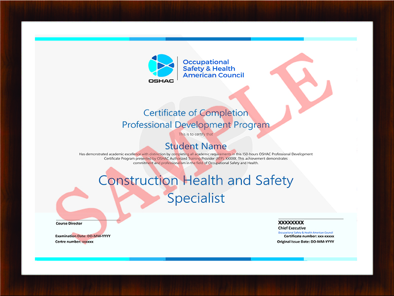 Occupational Safety and Health American Council (OSHAC) develop this program for safety specialists, coordinators, and others responsible for implementing their organization's safety and health program. Emphasis is placed on gaining the knowledge and skills necessary to assist in the establishment and management of an effective safety and health program.